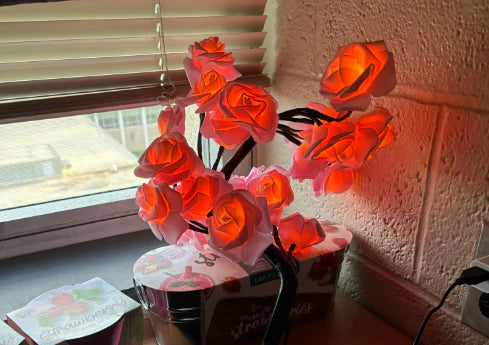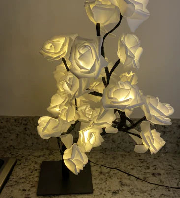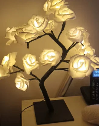 24 subtelnie podświetlone różyczki, ciepłe światło 2700K i elegancka forma drzewka. Zero tandety, maksimum klimatu.